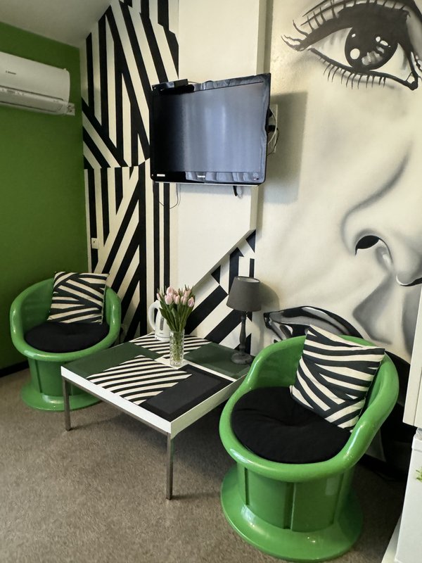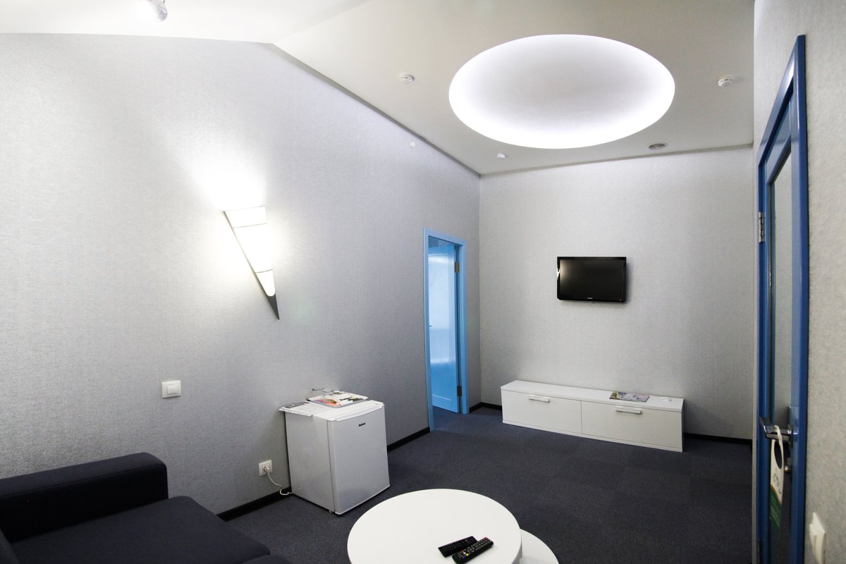 Не хочется в бассейн? Не проблема! Вместо этого можно посидеть в нашей комнате отдыха. Мы постарались создать здесь комфортный, стильный интерьер из максимально натуральных, экологичных материалов, выбрать мебель, которая будет одновременно удобной и приятной глазу. Надеемся, что вы его оцените! Для создания настроения у нас есть кальян и караоке. Также у нас работает бар, а если нужно, вы можете прийти и со своей едой - мы не против! Только не забывайте, что плотная трапеза непосредственно перед посещением парной - это не самая хорошая идея, согласно мнению докторов. А вот после парной можно трапезничать смело!